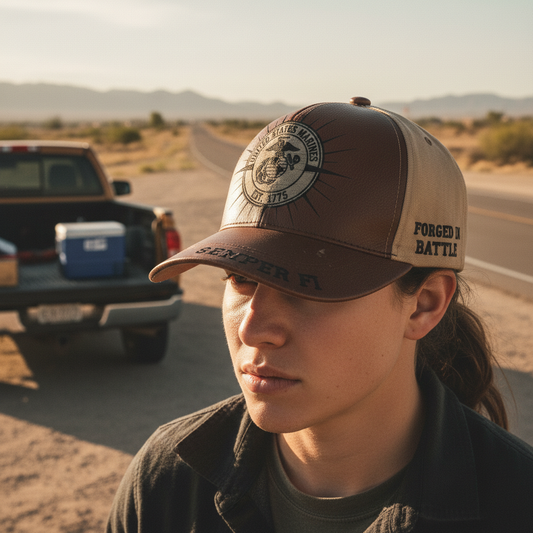Custom USMC Veteran Name & Years Served Hat - Forged in Battle Edition