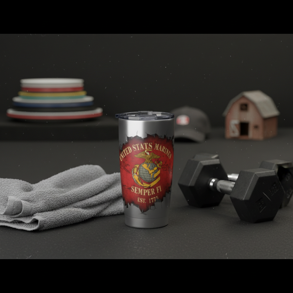 Hydration meets tactical durability. Built to withstand the harshest environments, the Marine Tumbler is engineered from military-grade stainless steel to keep your coffee piping hot on early morning shifts or your water ice-cold through grueling workouts. Featuring a rugged, sweat-proof exterior and a heavy-duty, spill-resistant lid, this tumbler is designed to take a beating and keep right on going. Whether you're at the campsite, the job site, or on the road, it's the ultimate utility gear for your daily grind.