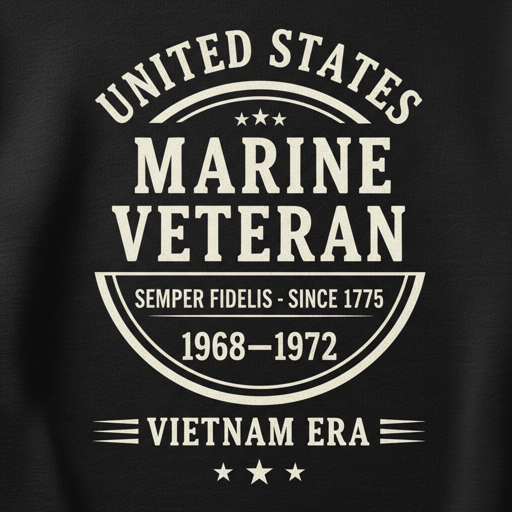 United States Marine Corps Veteran Shirt - Vietnam War Era 1968-1972 Black Pullover