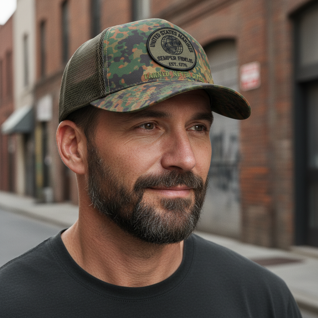 United States Marines "Earned. Never Given." Custom Camo Cap